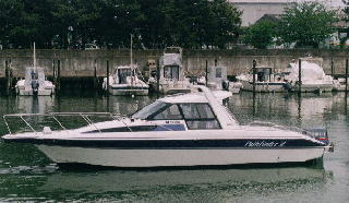 バブル真っ只中、東京国際ボートショーを見学。当時はン億円の豪華クルーザーが所狭しと展示されていましたが、その中でポツンと展示されていたちょっと小さめのモーターボート。価格も二桁安いとなると金銭感覚を失っている私が飛びついたのは言うまでもありません(笑)。会場でたまたま家の近くのボート屋さんの営業マンと出会い、置き場も確保してくれるというので即購入と相成りました。。。(^^;
